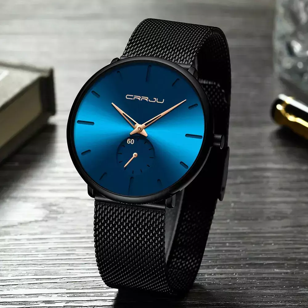 O Relógio CRRJU Cronos® não é apenas um acessório, é a peça que transforma o seu estilo e transmite confiança em qualquer ocasião. Com pulseira estreita de malha refinada e um mostrador de aço inoxidável à prova d’água, ele une sofisticação, resistência e modernidade em um só design.